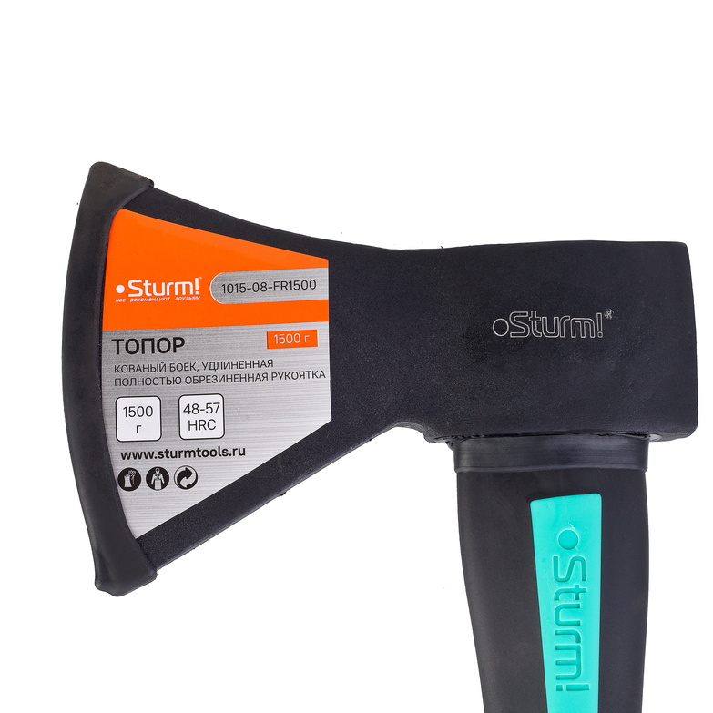 Топор, 1500г, фиберглассовая обрезиненная рукоятка, Sturm!