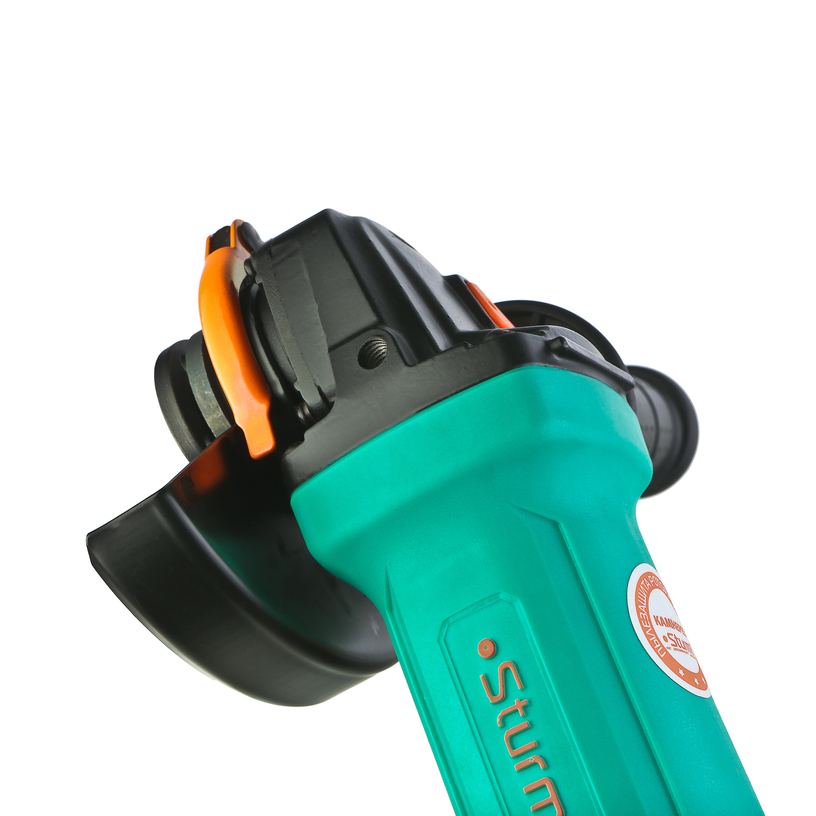 Sturm AG9012TJ – компактная универсальная болгарка (УШМ) под рабочий диаметр диска 125 мм. Инструмент разработан с учетом японской системы обеспечения защиты от разрушающего воздействия абразивной пыли на основные движущиеся узлы и компоненты и способен выполнять любые задачи по резке, зачистке, шлифованию поверхностей из металла, керамической плитки, кирпича и камня. Модель обладает оптимальными массово-габаритными показателями и выверенными пропорциями: малый диаметр корпуса обеспечивает максимальное удобство хвата, нейтральный центр тяжести позволяет уверенно контролировать инструмент в процессе работы даже одной рукой, низкопрофильный корпус редуктора клиновидной формы облегчает работу в местах с трудным доступом. Инструмент оснащен мощным 1000 Вт электромотором с бронированными обмотками ротора и статора, пылезащищенной кнопкой пуска, усиленным высокопрочным редуктором, – все это обеспечивает достаточный запас по надежности и позволяет уверенно использовать Sturm AG9012TJ для работ с большим количеством абразивной пыли. Модель проста в эксплуатации и обслуживании. Снабжена быстросъемным защитным кожухом, который надежно фиксируется при помощи специального зажимного рычага – это дает возможность при необходимости быстро изменять положение кожуха, не прибегая к помощи вспомогательного инструмента, а также удобной патентованной рукоятью со специальным твердосплавным карандашом для нанесения разметки на поверхности любой сложности, включая ржавые, влажные и маслянистые.