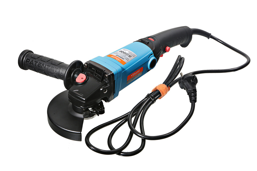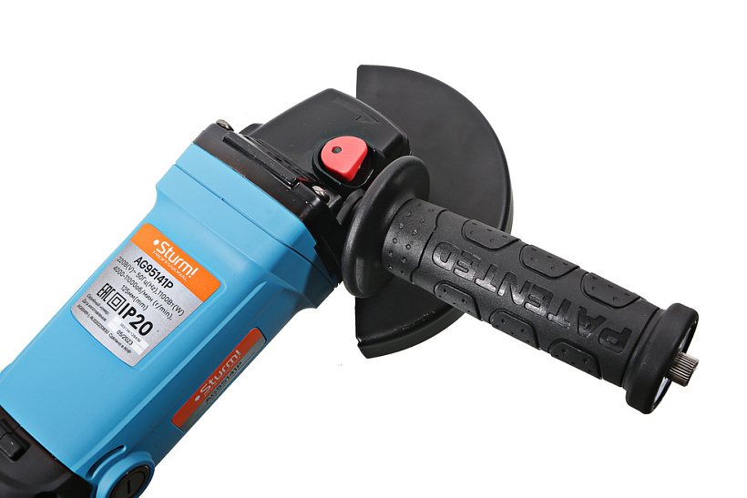 Sturm AG95141P – мощная универсальная болгарка (УШМ) профессиональной серии инструмента Sturm под рабочий диаметр диска 125 мм. Имеет компоновку с длинной рукоятью, за счет чего максимально удобна при зачистных и шлифовочных операциях. Выверенные массово-габаритные показатели, а также нейтральный центр тяжести обеспечивают лучший контроль инструмента, а клиновидный корпус редуктора позволяет работать даже в условиях с трудным доступом. Главная особенность модели, выделяющая ее среди аналогов – наличие блока константной электроники который гарантирует поддержание стабильной частоты вращения на валу шпинделя, препятствуя падению оборотов под нагрузкой. Кроме того, Sturm AG95141P оснащена системой плавного пуска, снижающей величину пускового тока и исключающей стартовый рывок, а также электронной регулировкой оборотов (4000 – 10000 об / мин), благодаря которой достигается оптимальный подбор частоты вращения в зависимости от типа используемой оснастки и обрабатываемого материала. Модель имеет повышенные надежность и ресурс, как за счет применения качественных комплектующих ( японские фирменные подшипники NSK), так и благодаря продуманной, с запасом по прочности, конструкции : электромотор покрыт несколькими изоляционными слоями термостойкого лака и имеет дополнительную защиту от пыли и абразивных частиц, благодаря закалке, повышенной износостойкостью обладают шестерни редуктора, в качестве опор вала шпинделя установлены шарикоподшипники, корпус инструмента изготовлен с использованием нейлона, что способствует его долговечности. Модель проста в эксплуатации и обслуживании. Снабжена быстросъемным защитным кожухом, надежно фиксирующимся при помощи специального зажимного рычага, а также удобной обрезиненной патентованной рукоятью с твердосплавным разметочным карандашом внутри. Предусмотрена возможность быстрого доступа к щеткам, упрощающая процесс их замены, так как исключает демонтаж элементов корпуса.
