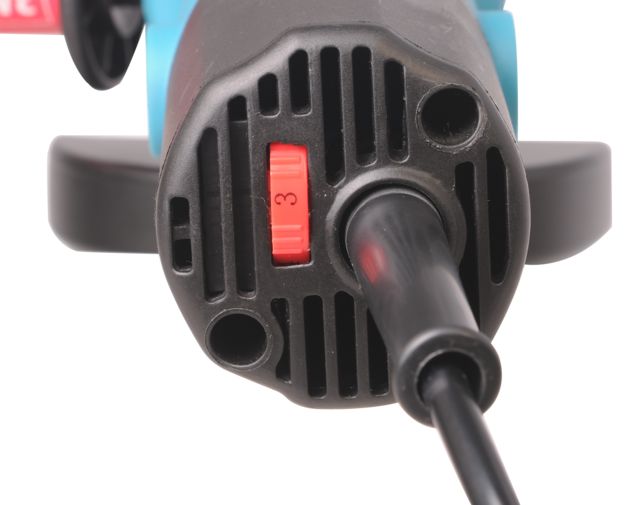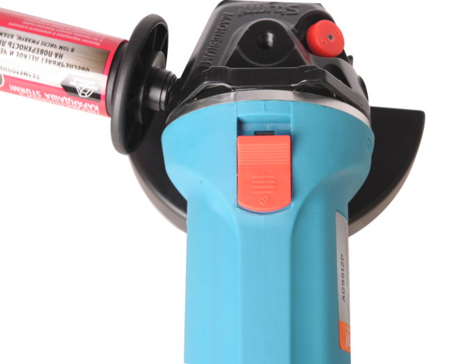 Об отличной приспособленности к зачистным и шлифовочным работам свидетельствует отдельные конструктивные решения: вал шпинделя установлен на двух шарикоподшипниках, забор воздуха в двигатель производится с торцевой части корпуса (со стороны сетевого кабеля), за счет чего значительно снижается возможность попадания в двигатель пыли и абразивных частиц, корпус редуктора вместо привычных двух имеет три гнезда под крепление дополнительной рукояти. Однако, ключевая особенность, обеспечивающая универсальность применения – наличие константной электроники, которая позволяет поддерживать одну и ту же частоту вращения на валу шпинделя, как на холостом ходу, так и под нагрузкой, препятствуя просадке по оборотам. Важной особенностью Sturm AG9512P является система плавного пуска – она снижает пусковые нагрузки на двигатель и предотвращает рывок инструмента в момент включения. Модель проста в эксплуатации и обслуживании. Снабжена быстросъемным защитным кожухом, надежно фиксирующимся при помощи специального зажимного рычага, не прибегая к вспомогательному инструменту, а также удобной обрезиненной патентованной рукоятью с твердосплавным разметочным карандашом внутри. Предусмотрена возможность быстрого доступа к щеткам, что существенно упрощает процесс их замены, так как исключает демонтаж элементов корпуса.
