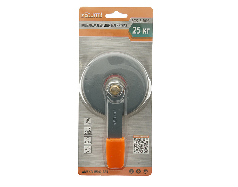 Клемма заземления магнитная, 500А, d 86mm Sturm!