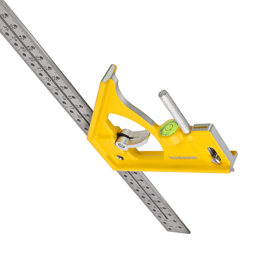 Угольник 300мм, уровень, выдвижной упор, чертилка, hanskonner