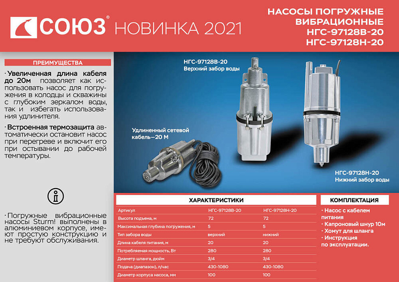 Насос вибрационный погружной СОЮЗ НГС-97128Н-20