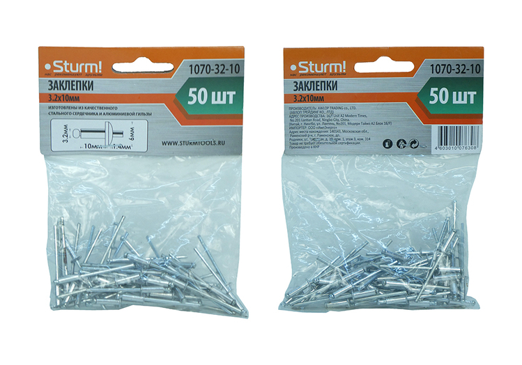 Заклепки 3,2 х 10 мм, 50 шт. Sturm!