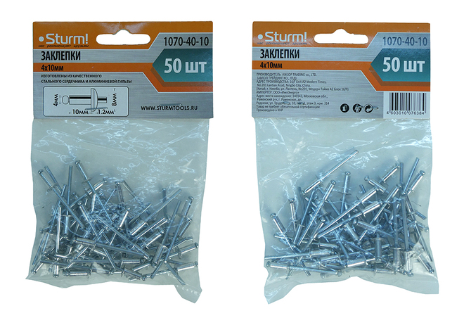 Заклепки 4,0 х 10 мм, 50 шт. Sturm!