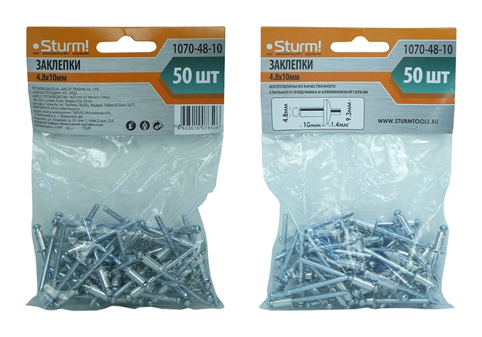 Заклепки 4,8 х 10 мм, 50 шт. Sturm!
