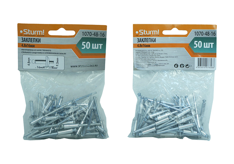 Заклепки 4,8 х 16 мм, 50 шт. Sturm!