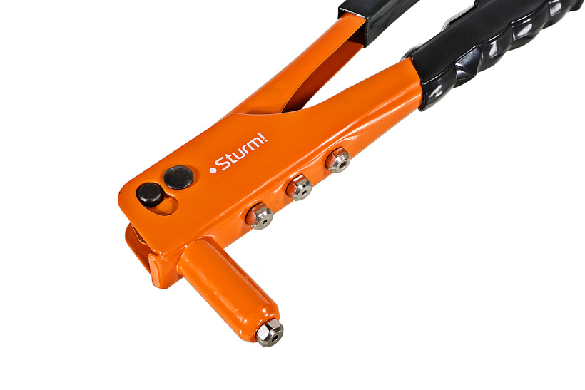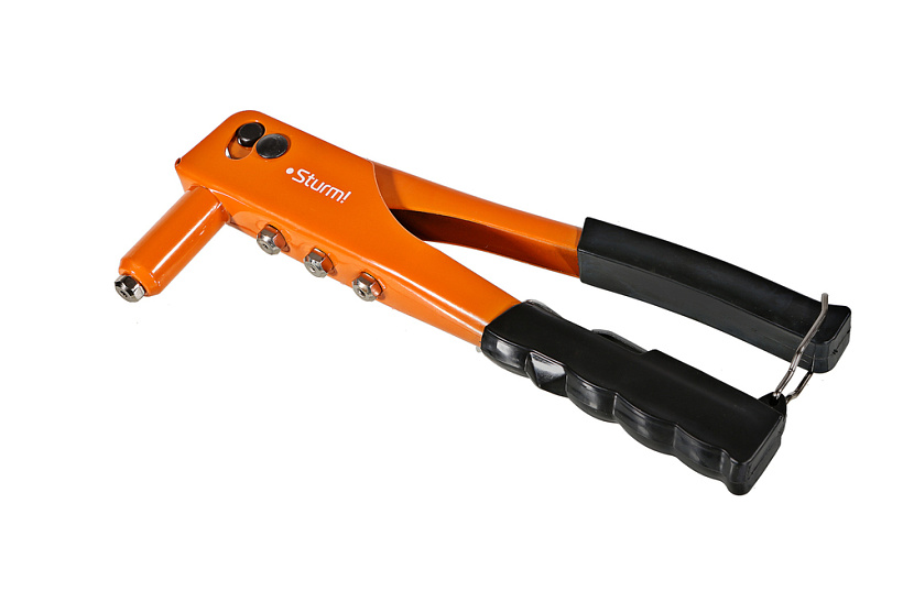 Заклепочник Sturm! 1070-01-250 является универсальным инструментом для соединения деталей из листового металла, ткани, кожи и пластика. Он поставляется с подпружиненной ручкой, которая выталкивает стержень заклепок. Корпус ручного заклепочника изготовлен из стали с нескользящими рукоятками и ключом для замены насадок. Комплектация включает 4 типа сменных головок: 3/32" (2,4 мм), 1/8" (3,2 мм), 5/32" (4,0 мм) и 3/16" (4,8 мм).