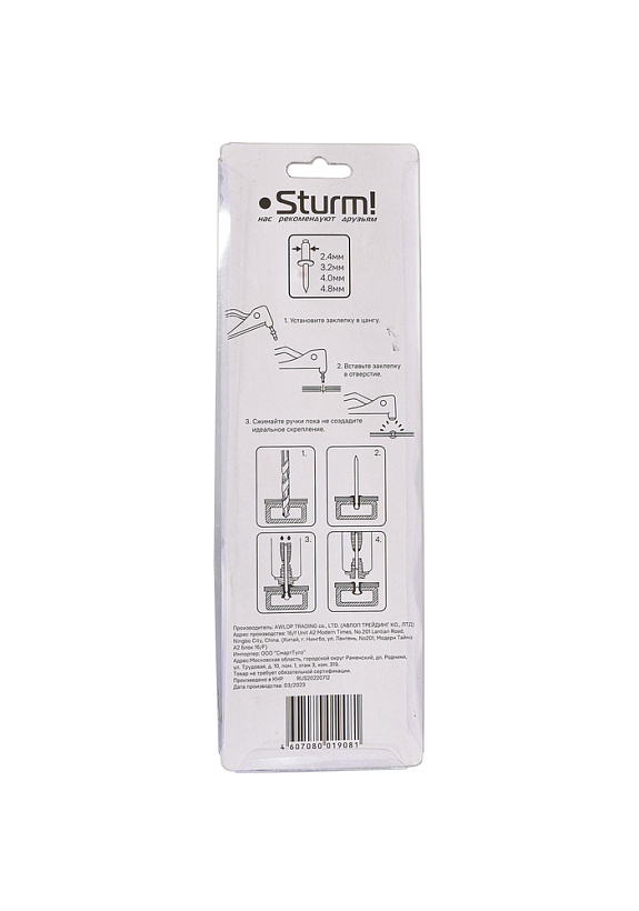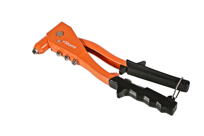 Этот ручной заклепочник используется для закрепления клепок в различных металлических листах, трубах и других материалов. Он широко используется при фиксации электромеханических изделий и изделий легкой промышленности, таких как автомобили, авиация, холодильное оборудование, лифты, инструменты, мебель и прочее. Комплектация включает 4 типа быстросменных головок: 3/32" (2,4 мм), 1/8" (3,2 мм), 5/32" (4,0 мм) и 3/16" (4,8 мм).